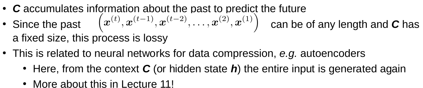 - Everything must be stored in a hidden state (context)