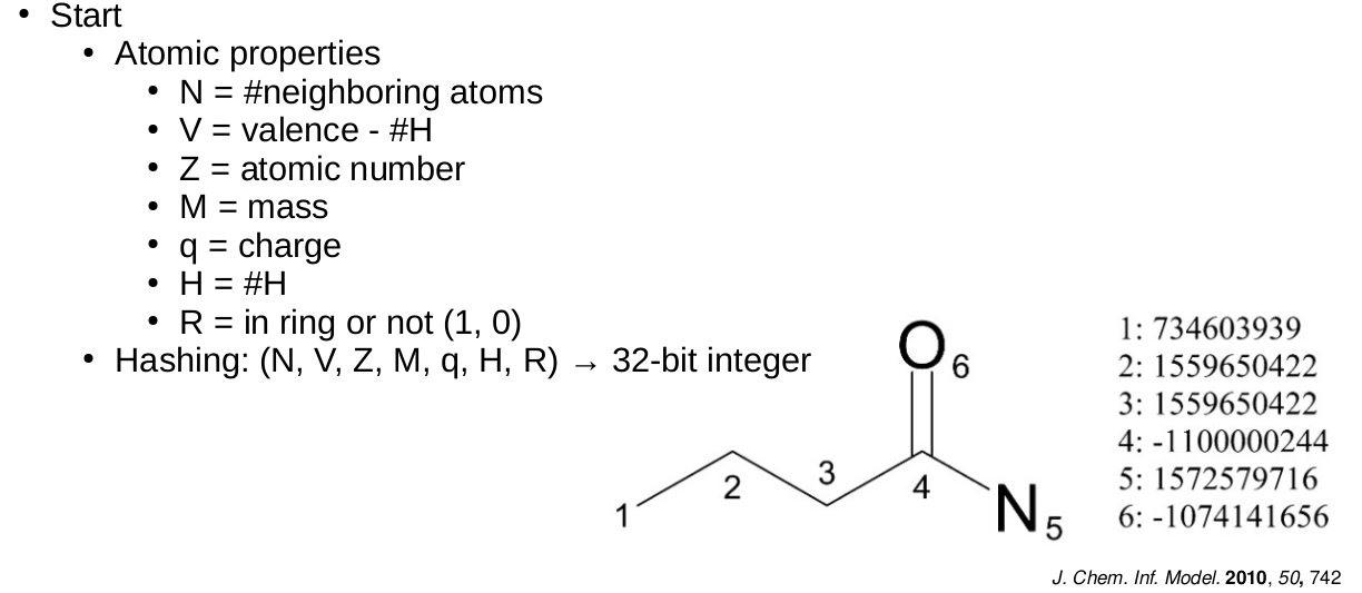 - They need to be identified and mapped to a bit vector of e.g. 1024 bit length
