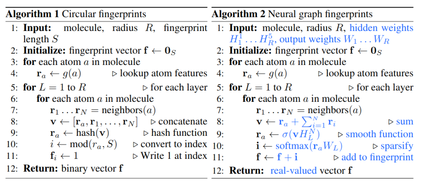 The fingerprint vector of the molecule is obtained via the readout function