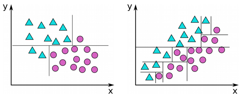 - Recursively repeat that for both subtrees until stopping criterion is reached